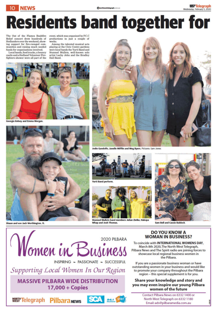 Residents band together for fire relief – the Out of the Flames Bushfire Relief concert drew hundreds of Hedlanders over the weekend.